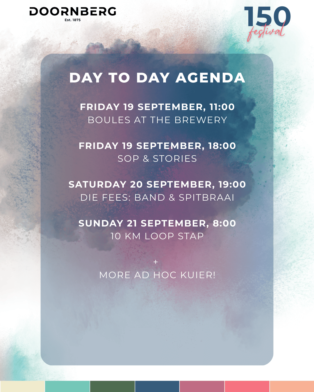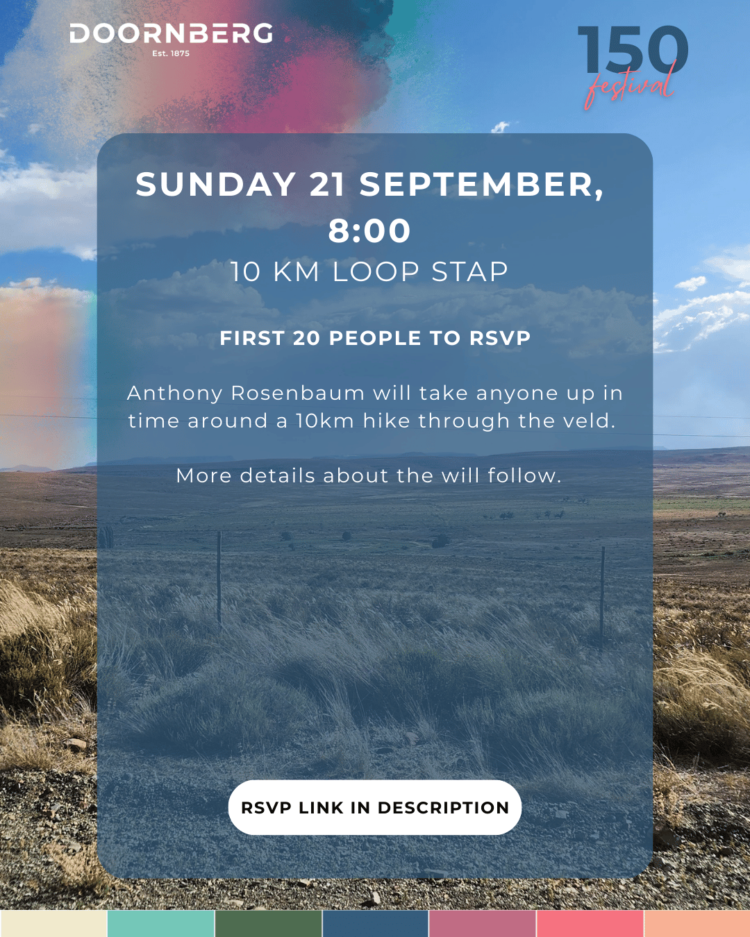 This year Doornberg celebrates 150 years in the van Heerden family, so we are having a festival in Spring!